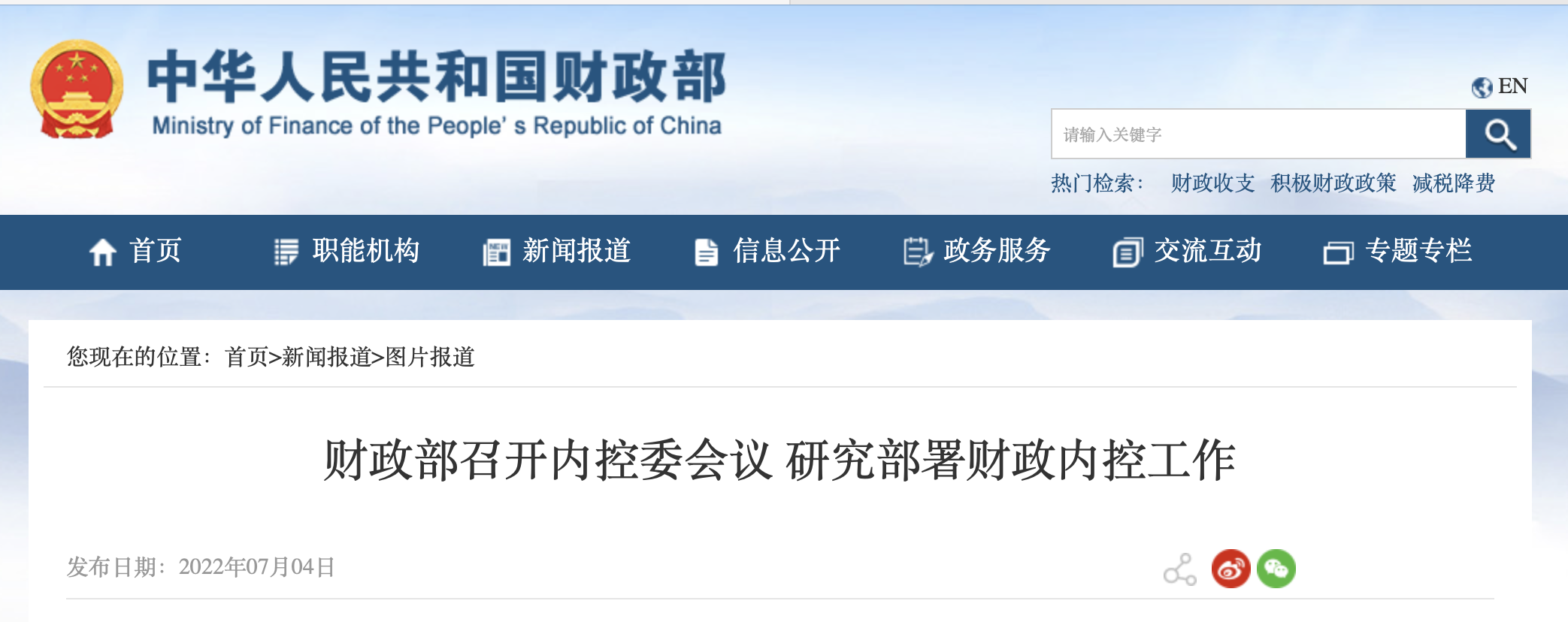 2022年6月29日,财政部内部控制委员会召开会议,听取2021年以来财政内控工作情况汇报,通报2021年开展审计问题内控审核及内控考评情况,对下一阶段财政内控工作作出部署。财政部党组书记、部长、内控委主任刘昆出席并讲话。