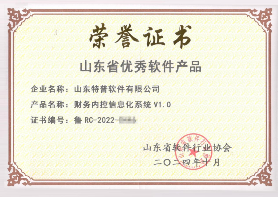2024年10月,山东省软件行业协会发布了2023年度山东省优秀软件产品评选结果。本次评选旨在培育和推广山东软件名牌,树立山东软件产业的整体形象,为政府采购、公共采购制订软件企业及软件产品采购目录,为广大用户推荐优秀的软件企业和软件产品。特普软件自主研发的“财务内控信息化系统V1.0”凭借卓越的技术创新和市场影响力,再度荣获“山东省优秀软件产品”称号。至此,特普软件已有多个软件产品获此殊荣,不仅彰显了特普软件在内控管理领域的领先地位,也标志着产品在业内的高度认可和赞誉。